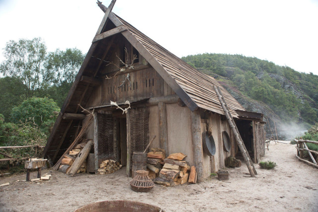 Beyond the house it has a herb garden, a small woodshed, and a open sided hall for communal weapons practice.