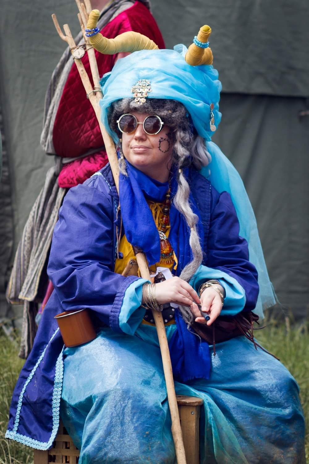 Add a base layer of fabric over it to cover the cap and begining of horns, (cutting holes for the horns) Then with another scarf do a tight tie.