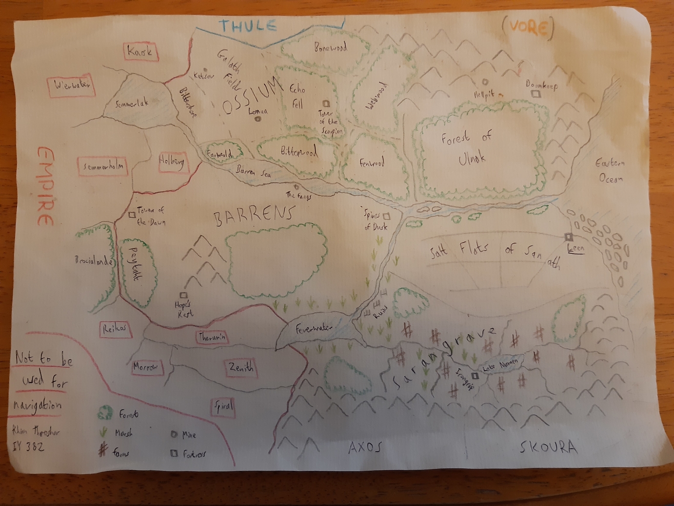 The continent of the Empire and neighbours is, as far as I know, un-named… I made it approximately X shaped, with lands to the SW (beyond the Iron Confederacy) and SE (beyond the Grendel and Axos).