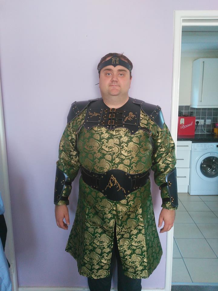 I had some customised pieces made by Darkblade. You can see I have dark blue leather engraved with astronomantic symbols representing my favourite constellations to do magic with! Strictly I don’t need the gorget/pauldron piece for full covereage but I wanted it anyway.