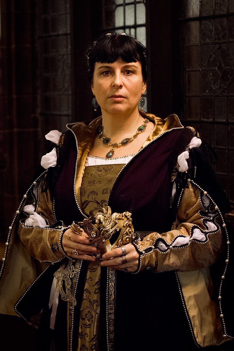 The gold underdress was made out of curtain fabric and has been through the washing machine countless times.