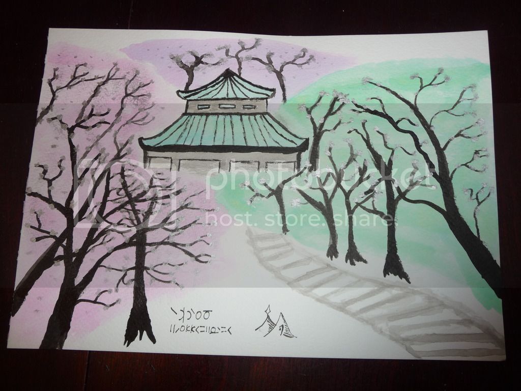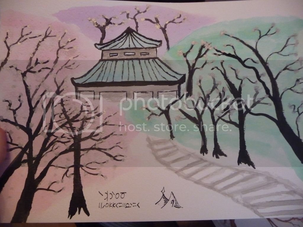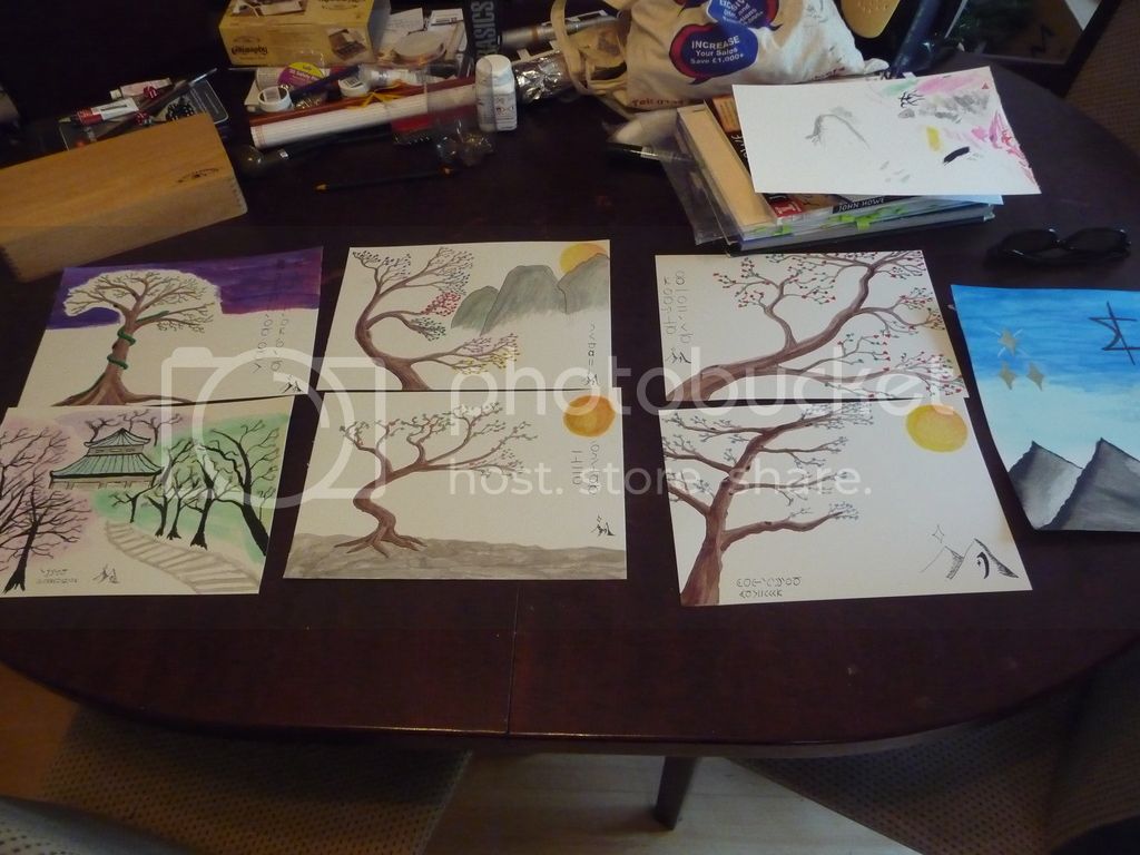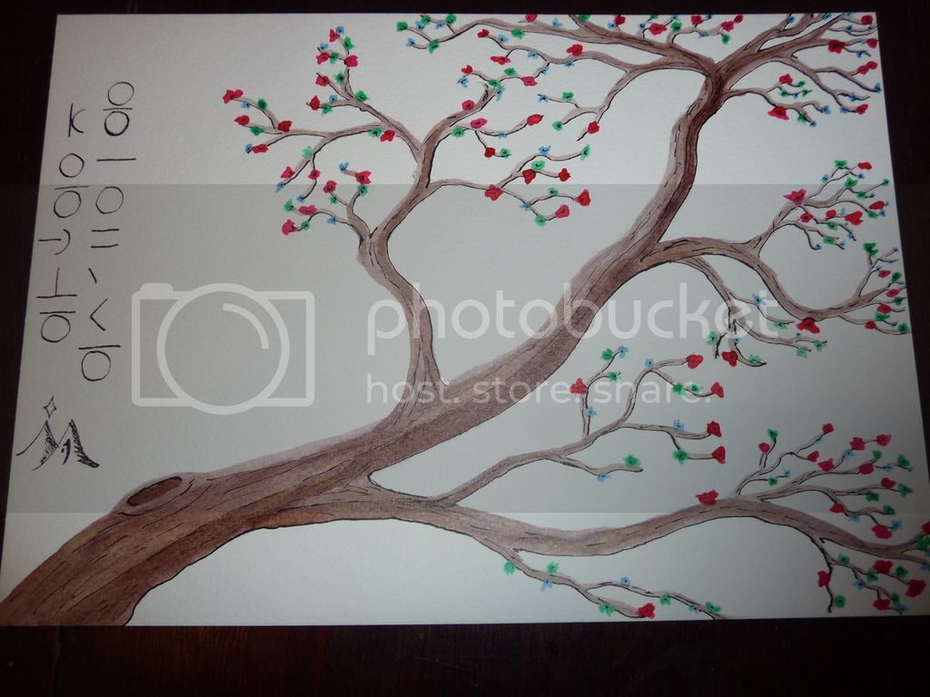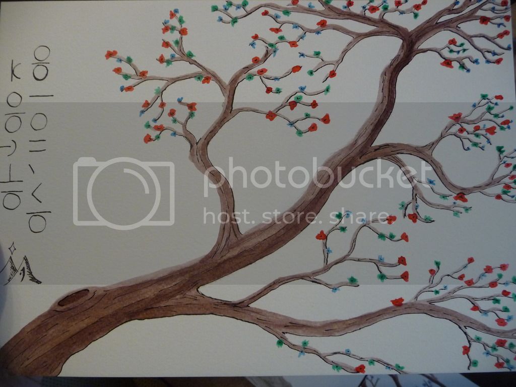 So I got a load of calligraphy inks as a present and have been itching to use them. I also couldn’t decide what to do for the flower festival. So in the end I decide I’d go for tree blossoms instead and make these: