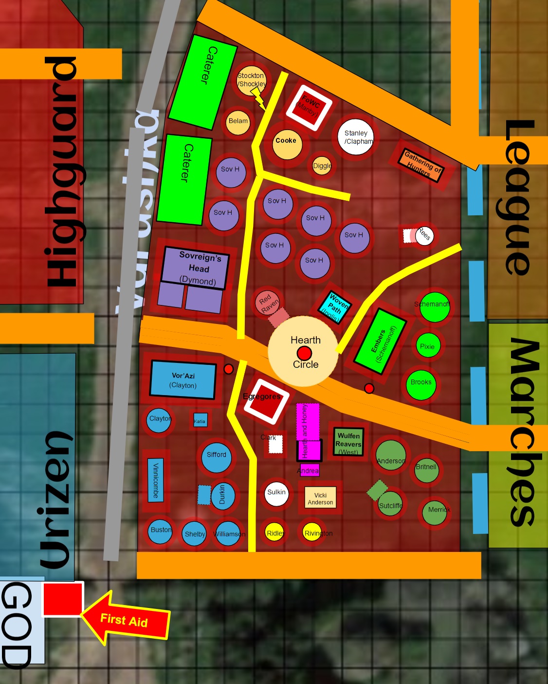 Just to give everyone fair warning: with the League and Marches swapping position, two food-vendors being included in our camp and a couple of seriously big groups joining the nation the layout is going to change fairly radically so don’t count on everything being in exactly the same place as last time.