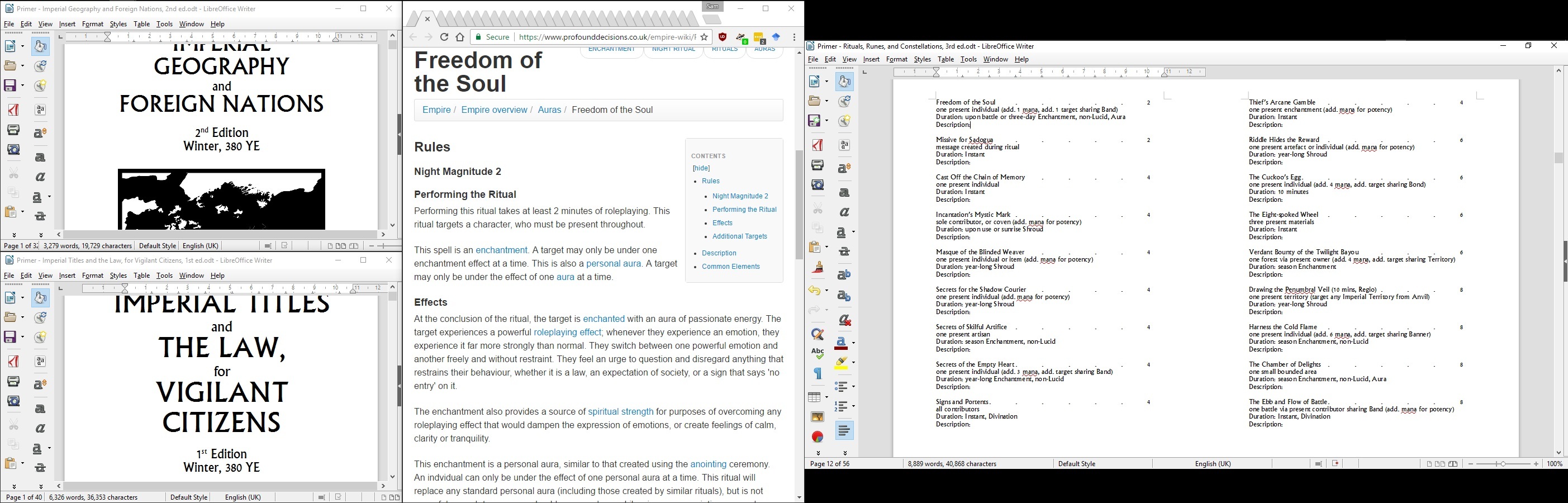 And then, Rituals, Runes, and Constellations; their Laws, Techniques, Applications, and Methodologies is what I’m working on today, filling in short details for every single ritual in the game.