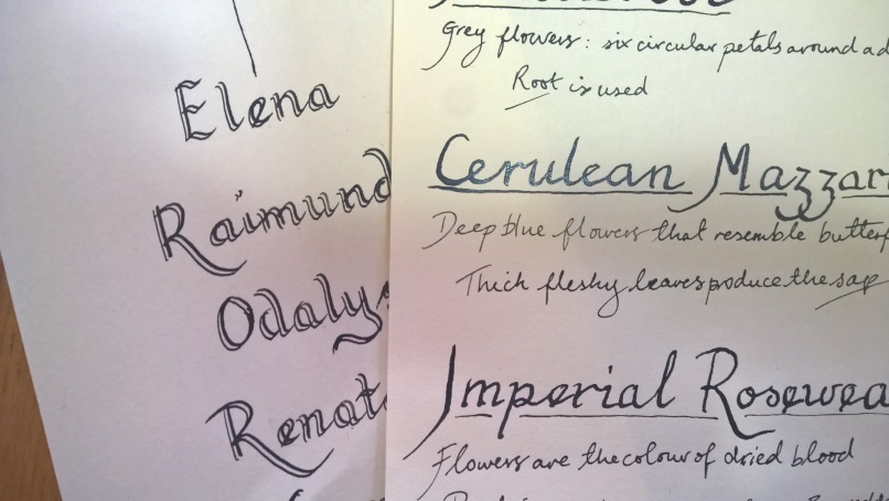 Shiny shiny calligraphy. Some is flavour text for herbs, the other is a super-secret idea I’m hoping to unveil at E1.